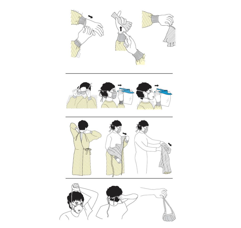 PPE should be removed in a manner that prevents contamination of the staff member’s clothing, hands and environment.