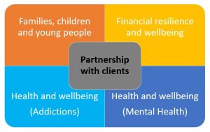 These services are delivered through four broad domains of practice: